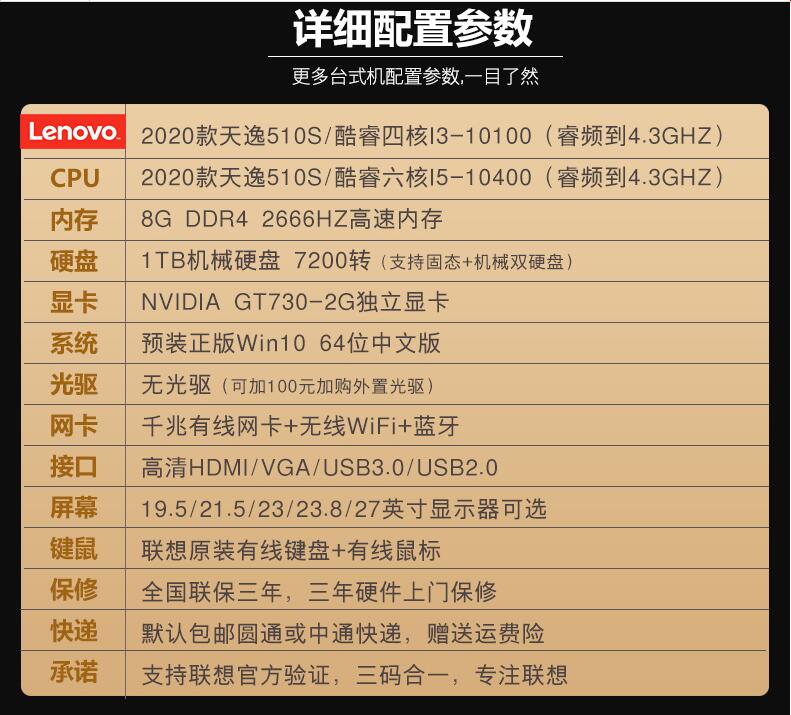 聯(lián)想臺式機電腦天逸510S/510PRO 十代六核I5-10400/四核I3 家用辦公商用財務炒股網(wǎng)課游戲設(shè)計全整套迷你主機