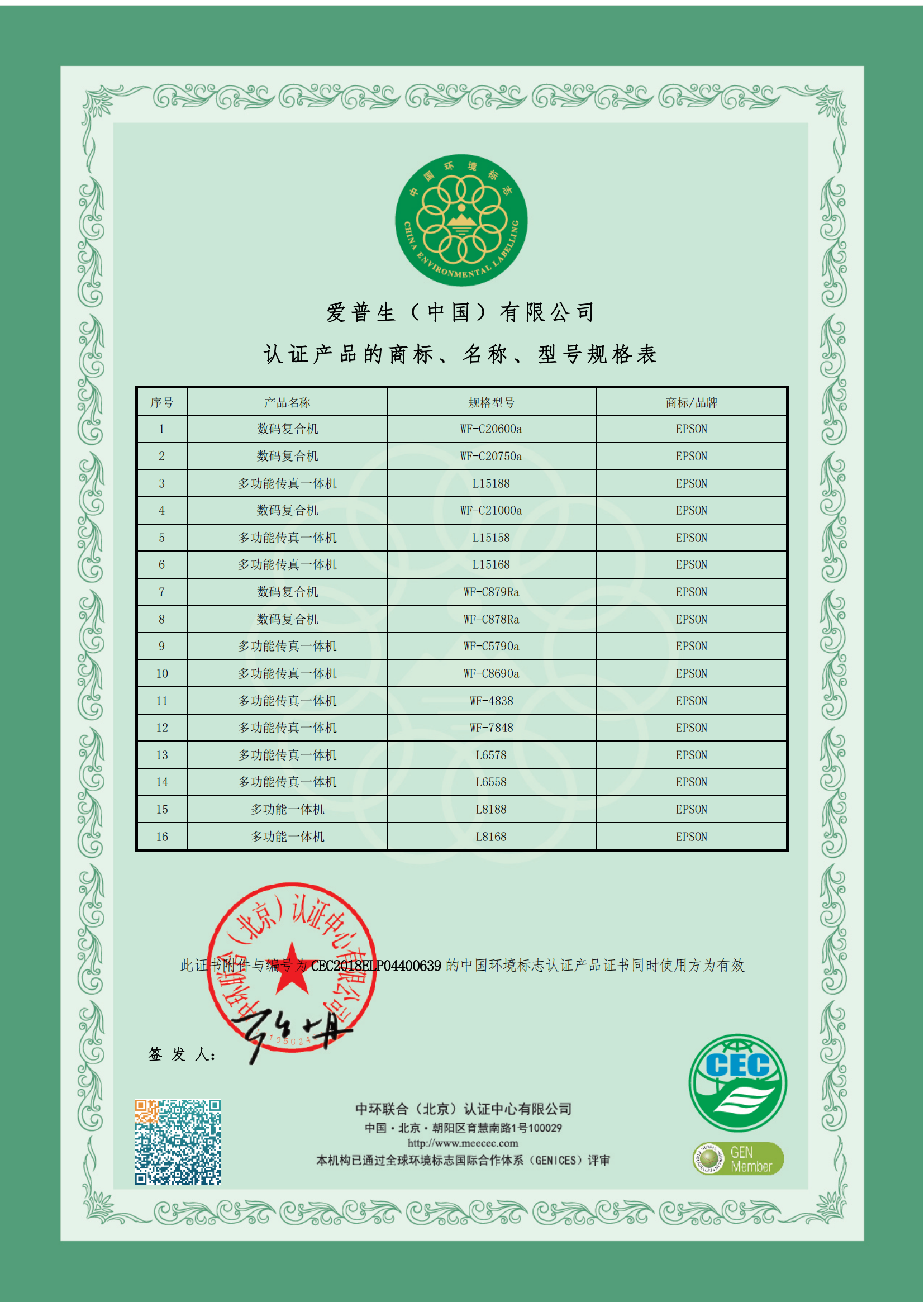 中國環(huán)境標(biāo)志產(chǎn)品認(rèn)證證書編號(hào)  :   CEC2018ELP04400639