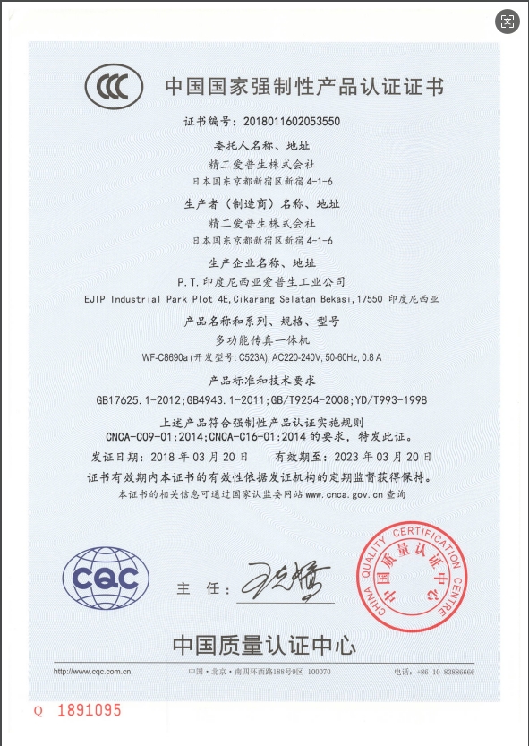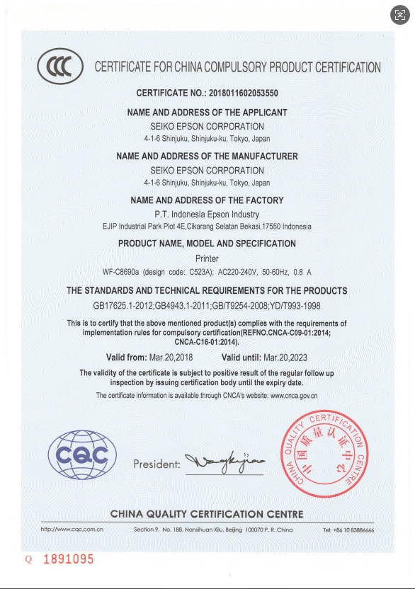 中國國家強(qiáng)制性產(chǎn)品認(rèn)證證書有效期  :   2023年03月20日
