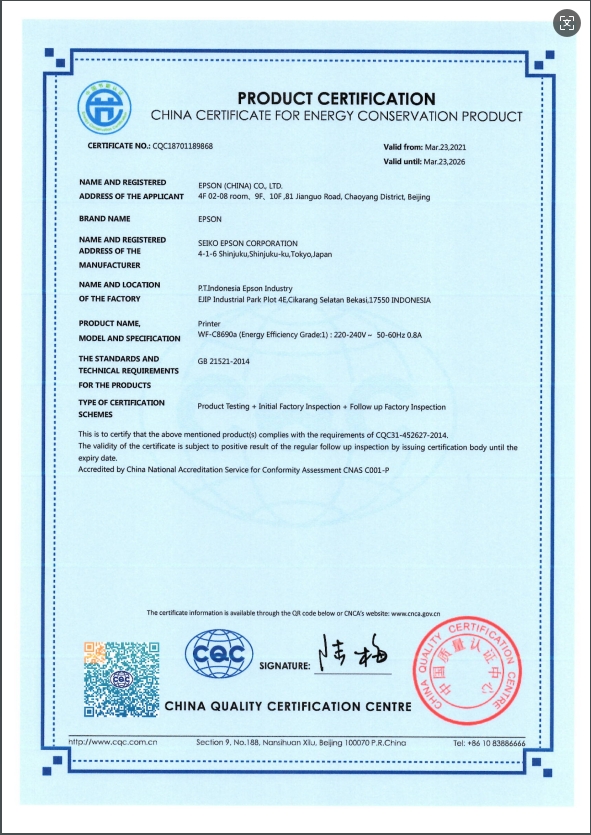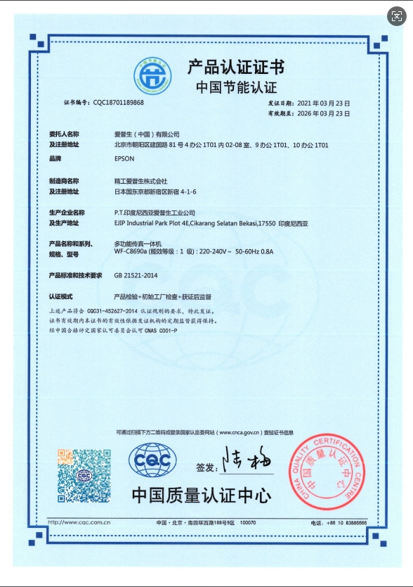 中國節(jié)能產(chǎn)品認(rèn)證證書編號(hào)  :   CQC18701189868